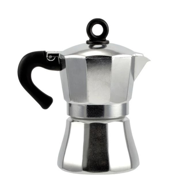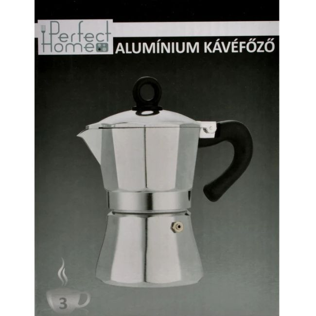 Fényes alumínium kotyogós kávéfőző 3 személyre – klasszikus forma, gazdag aroma, egyszerű használat. Tökéletes a mindennapi kávézáshoz.