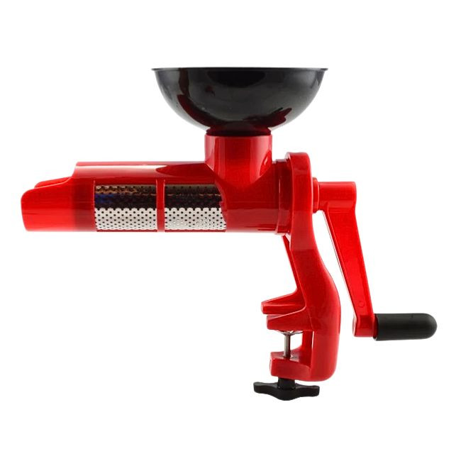 Ez a praktikus paradicsomdaráló igazi segítőtárs a konyhában, ha házi paradicsomlevet, szószt vagy akár friss gyümölcslevet szeretnél készíteni. Erős műanyag vázból és rozsdamentes acél szűrőből áll, így egyszerre könnyű és tartós. Az asztalra rögzíthető résszel stabilan a helyén marad, használata pedig gyerekjáték.